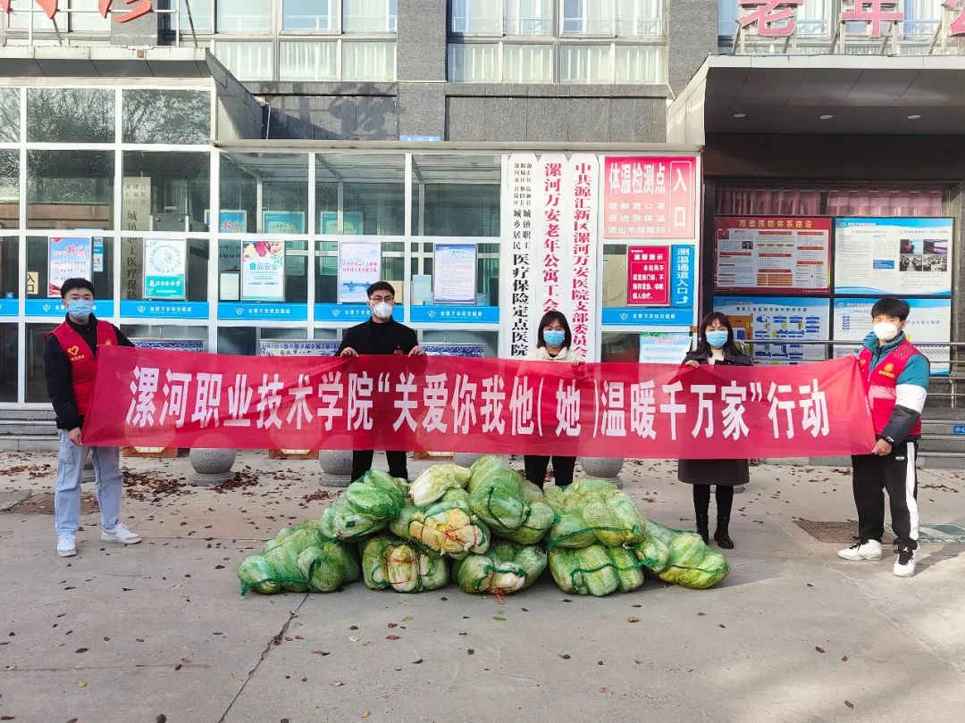 为了贯彻落实学校党委发起的“关爱你我他(她)•温暖千万家”行动,12月12日,suncitygroup太阳集团开展了一场温暖的“爱心接力”,将1000斤大白菜捐赠给学校一线安保人员和漯河万安老年公寓,以实事好事送温暖、送真情,将爱心接力,大力弘扬中华民族尊老敬老的传统美德,进一步倡导敬老、爱老、助老的新风尚。