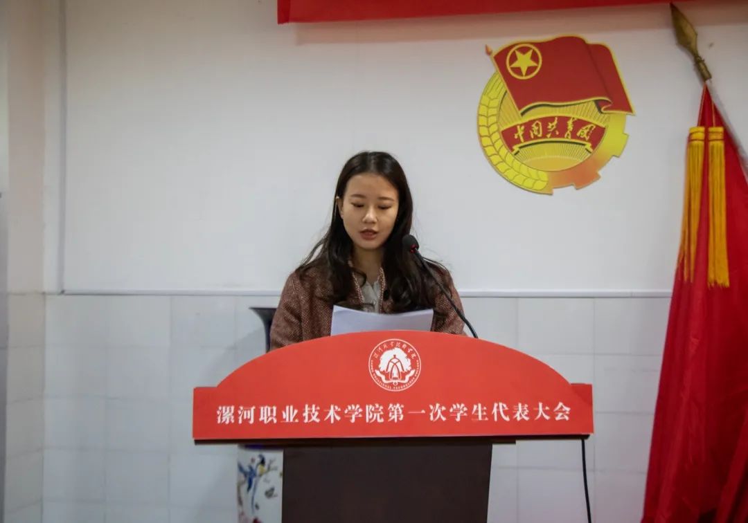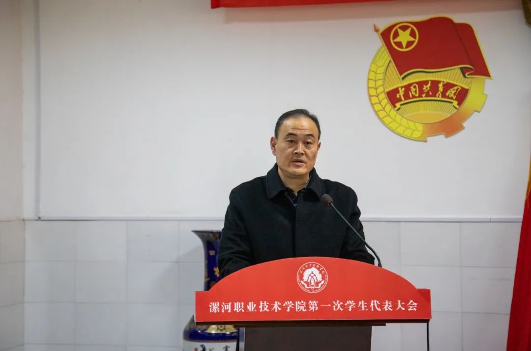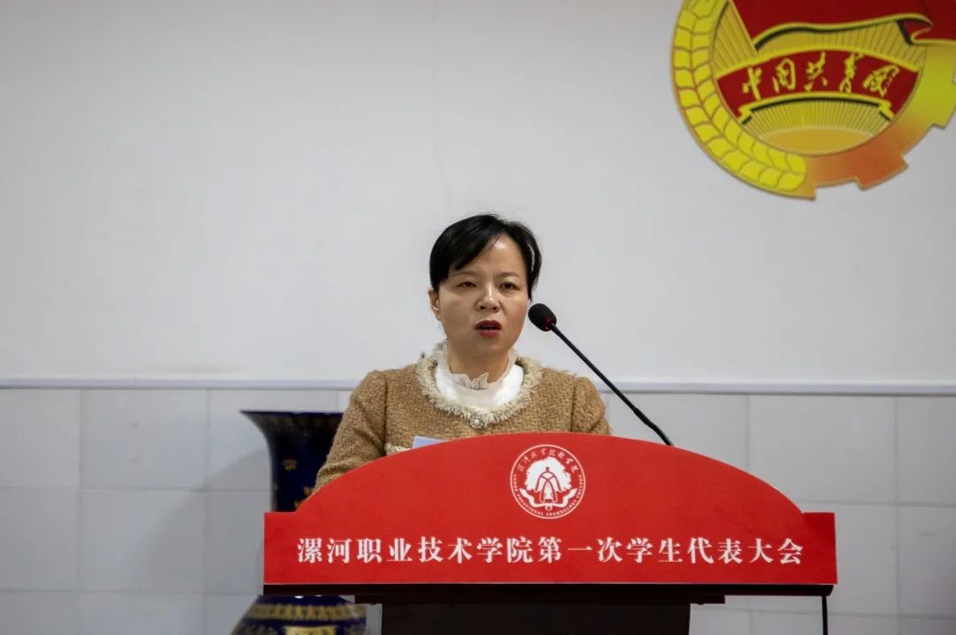 漯河市学生联合会副秘书长周烁代表团市委、市学联对我校第一次学生代表大会的胜利召开表示热烈的祝贺!