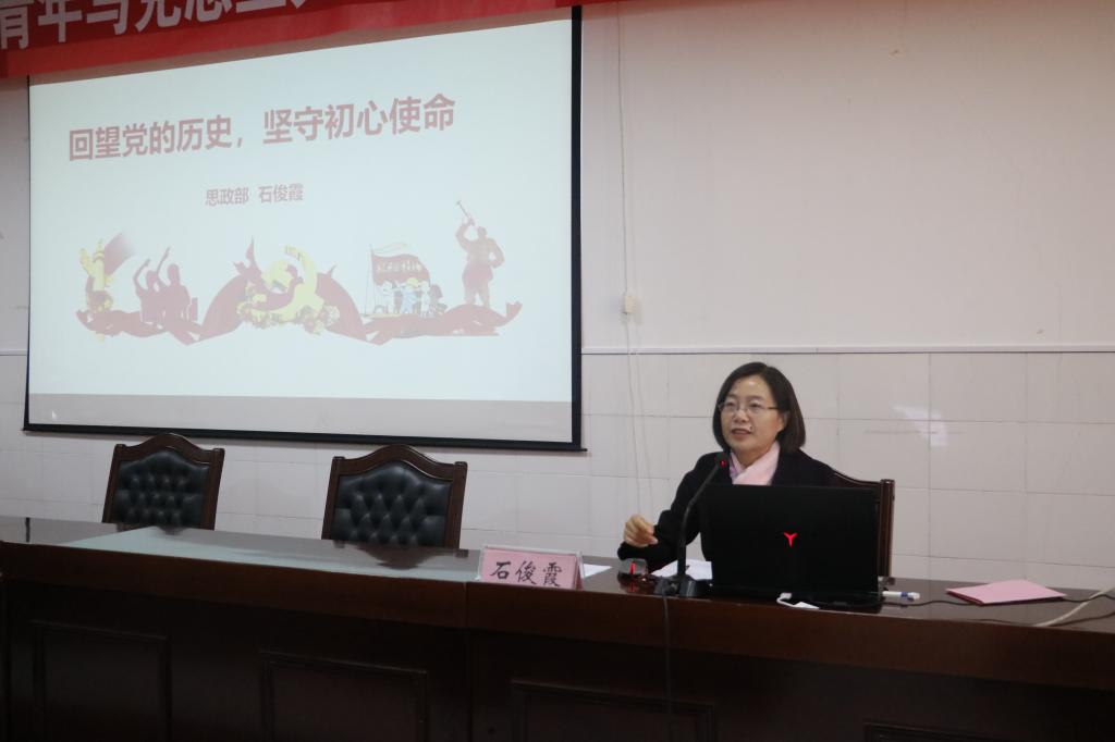 仪式后,思政部主任石俊霞教授作了《回望党的历史 坚守初心使命》专题讲座。她用通俗易懂的语言深入浅出地讲解中国共产党历经艰难困苦而不断发展壮大的历史,从“坚守马克思主义信仰不动摇、坚持党领导一切的忠心不动摇、坚持全心全意为人民服务的赤子之心不动摇、坚持实现中华民族伟大复兴的信心不动摇”,找寻中国共产党人的初心和使命。广大学员表示深受教育鼓舞,要坚持学用结合、知行合一,以青春之我、奋斗之我,为实现中国梦添砖加瓦!