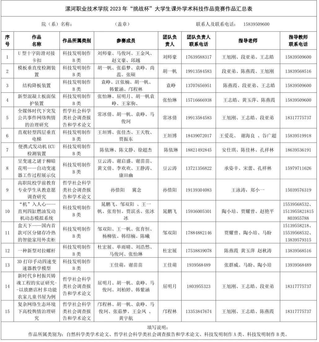 此次“挑战杯”大学生课外学术科技作品竞赛为同学们提供了锻炼和实践的平台,激发了同学们参与科技创新和学术研究的热情,漯职学子们将继续秉持大赛的主旨,崇尚科学、追求真知、锐意创新、迎接挑战。以青春之志照亮未来,勇立时代潮头,争做时代先锋。为全面建设社会主义现代化国家全面推进中华民族伟大复兴而不懈奋斗!
