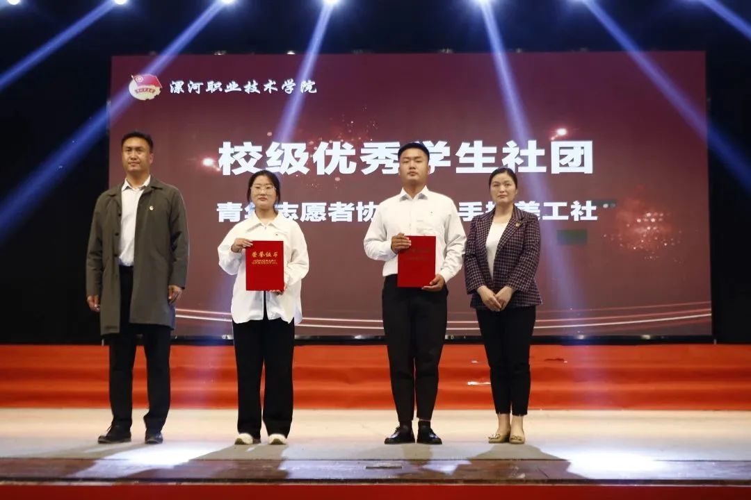 信息工程系团总支书记樊佩佩、工商管理系团总支书记赵秋涛为院级“优秀学生社团”颁奖