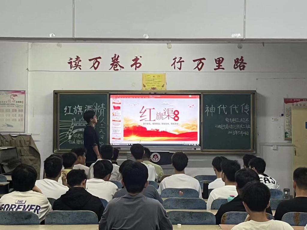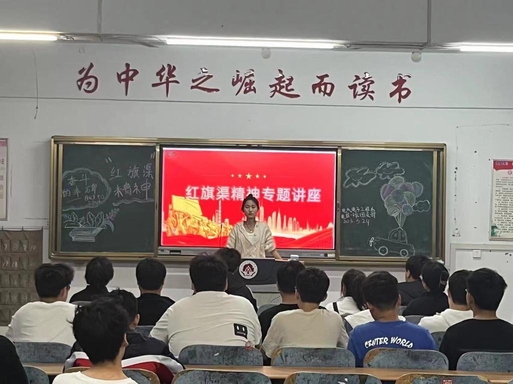 本次团课旨在带领同学们深入了解并弘扬红旗渠精神,从中汲取信仰力量,牢记使命,勇担时代大任。团课主要围绕“红旗渠的开凿过程”、“红旗渠精神的由来”、“习总书记考察红旗渠”以及“弘扬红旗渠精神”四个部分逐一展开。各系团支部通过观看视频、团员代表讲故事、优秀团员分享学习感悟等形式,用真实的故事经历进一步感受老一辈“修渠人”自力更生、艰苦奋斗的精神。大家纷纷表示:年轻一代要摒弃“骄娇二气”,继承和弘扬红旗渠精神,把青春热血镌刻在历史的丰碑上,全力谱写属于我们的青春答卷。