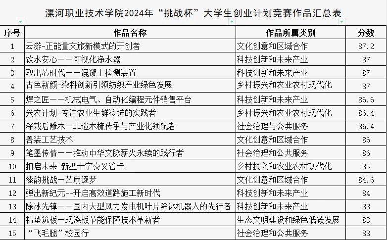经过精彩的比拼,最终15个项目晋级省级比赛。
