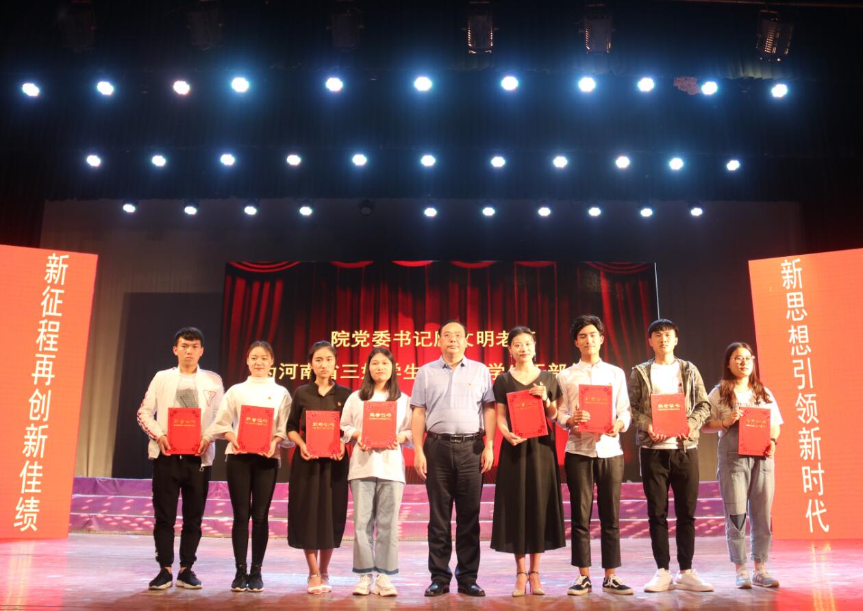 顾文明发表讲话。他代表学院党委向全院团员青年和各级团组织、团干部、青年工作者致以节日的问候,向今天受到表彰的先进集体和先进个人表示热烈的祝贺。他指出,“五四运动”是一面光辉的旗帜,为我们党的创建奠定了思想和组织基础,激励着一代又一代青年奋发进取,健康成长。一年来,学院各级团学组织在学院党委和团市委的领导下,以"五四"运动精神为感召,明确当代青年学子肩负的历史责任和使命担当,开展了大量富有成效的工作,取得了丰硕的成果。同时他代表院党委对团员青年和共青团组织提四点希望和要求:第一,广大团员青年要坚定理想信念,勇挑时代重任。大家要珍惜这个伟大时代、黄金时代,与中国发展同行,与中国开放相伴,与中国变革俱进,与中华复兴共存,做新时代的见证者、开创者、建设者。第二,激扬青春活力,勇于探索创新。人生的黄金时期在青年,同学们一定要把学习当作首要任务,敏于思考,勤于钻研,不断提高自身素质和能力,真正做到学有所长、业有所专、技有所精。要敢闯敢干、敢试敢为,成长为具有创新意识的新时代漯职人。第三,锤炼高尚品格,做文明和谐新风尚的引领者。广大青年要从现在做起、从自身做起,把社会主义核心价值观作为基本行为准则和普遍价值遵循,自觉践行社会主义核心价值观,倡导社会文明新风,以实际行动促进社会进步。