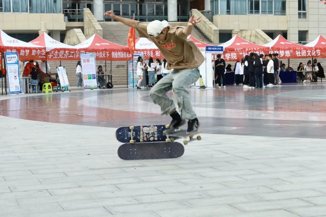 摆摊位、玩特色、拼创意,学生社团各展所长,通过书法、舞蹈、音乐等形式集中亮相,展示自己独特的社团风采。