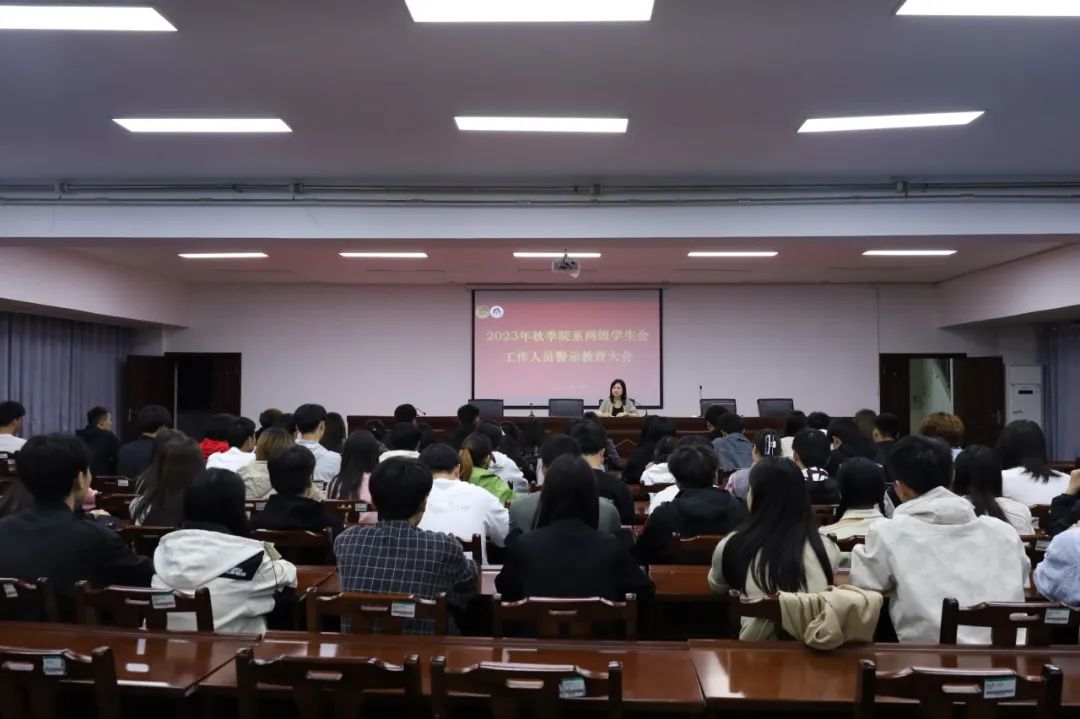 为深入学习宣传贯彻党的二十大精神,进一步推进学生会组织改革,加强学生会工作人员的作风建设。10月24日晚上,院团委在行政楼七楼会议室开展2023秋季院系两级学生会工作人员警示教育大会。院系两级学生代表100余人参会。