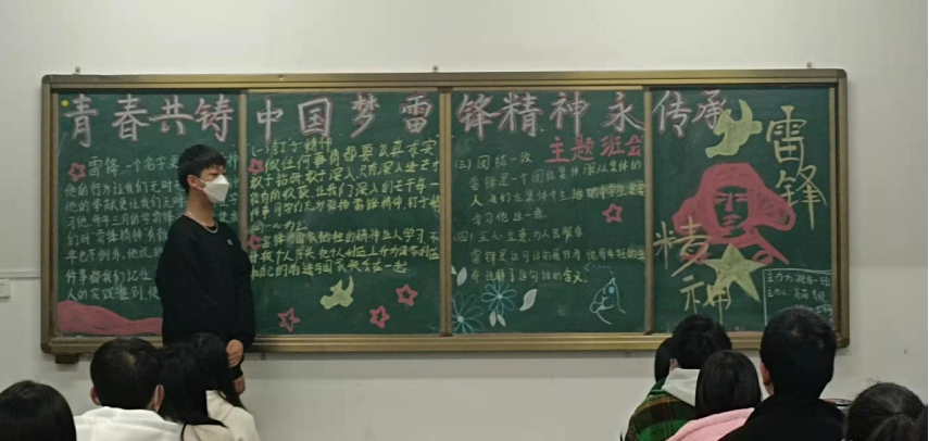 艺术设计系团总支开展“弘扬雷锋精神”黑板报评比活动。将雷锋精神深入贯彻到青年学生群体中,激励和引导青年学生积极向上。举办”最美校园 青春助力”、”文明餐桌 光盘行动“等活动弘扬和诠释雷锋精神。