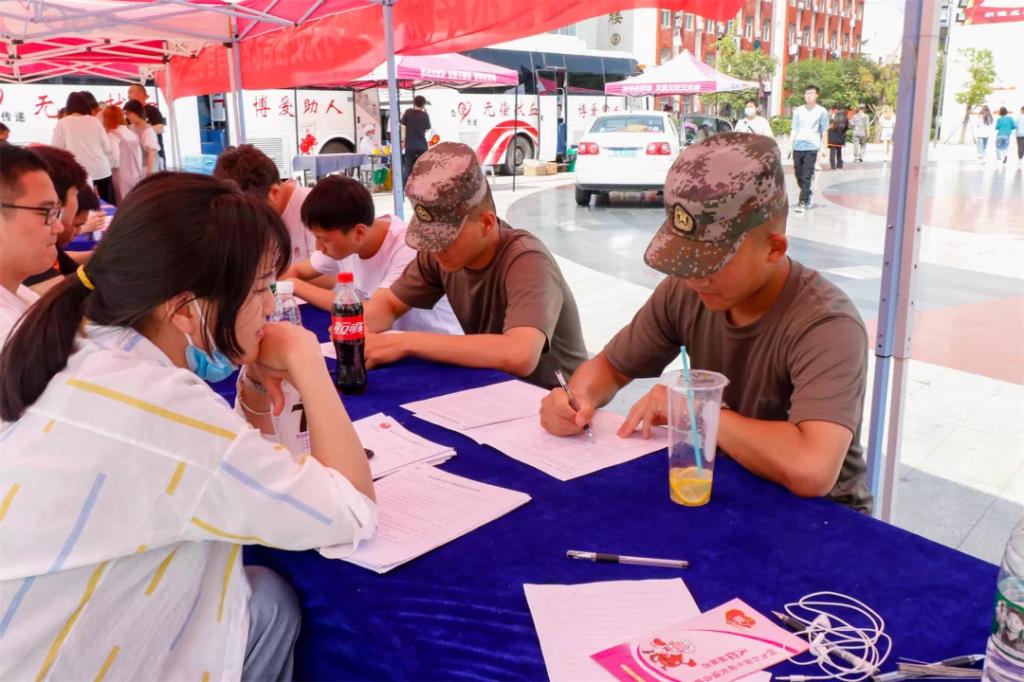 2021年5月20日-5月21日,suncitygroup太阳集团青年志愿者协会在实训广场举办“ 学习党史强信念 热血青春心向党”无偿献血志愿服务活动。