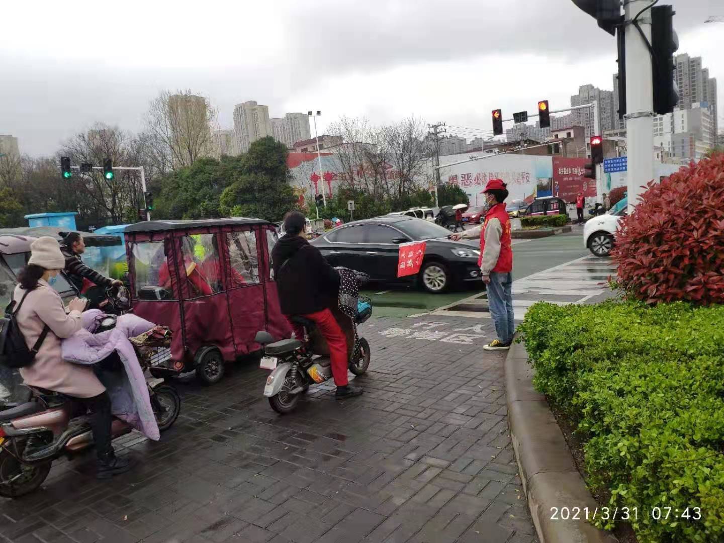 2021年3月31日机电系学生在太行山路进行交通执勤活动
