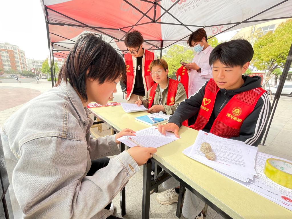 2023年4月12日-14日,院团委在实训广场举办“ 学习二十大 热血践初心”无偿献血志愿服务活动。