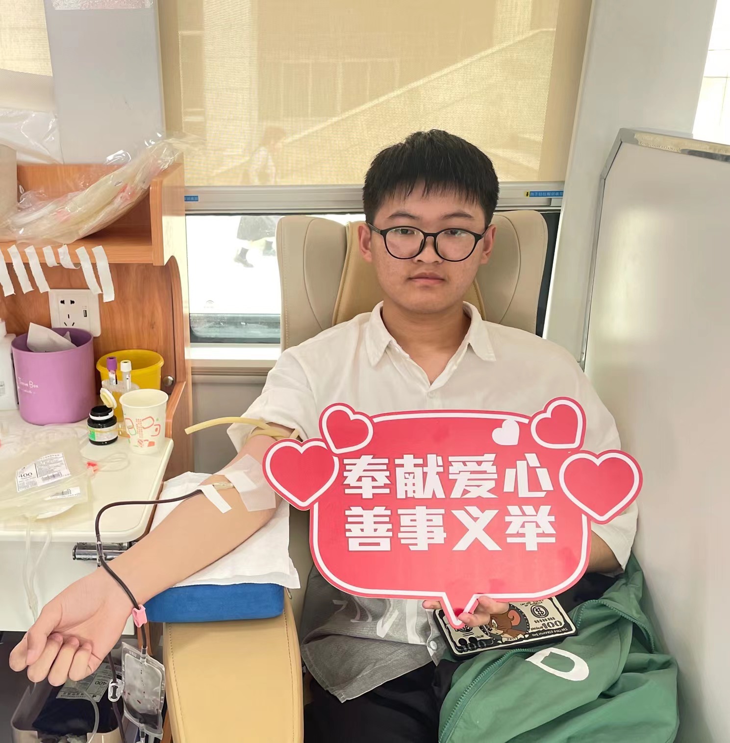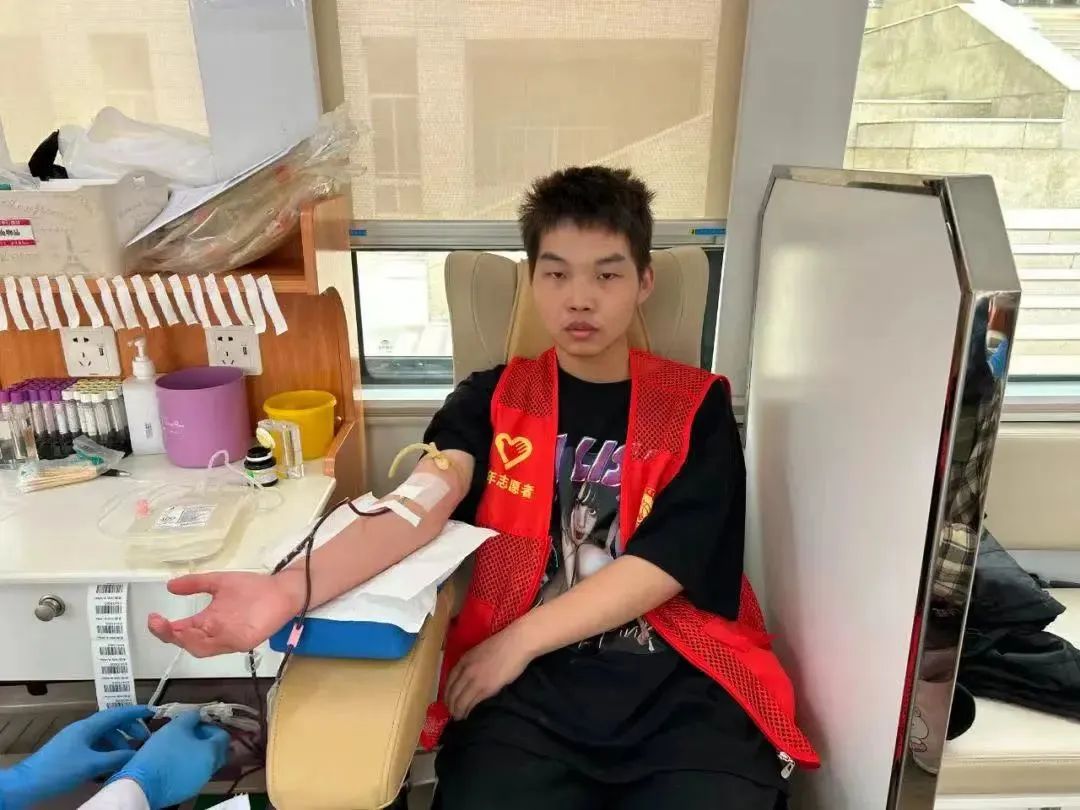 4月12日是工商管理系2022级学生王胜哲19岁生日,听说此次爱心活动后特地来献血,他用爱心感染更多的学子加入到无偿献血的队伍中来,在他身上看到了朝气蓬勃的青春能量。