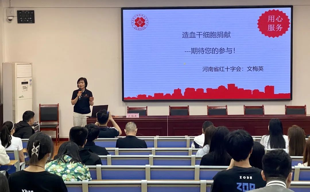 会上,河南省红十字会文梅英老师结合实际工作中遇到的案例,从输血发展史、无偿献血及造血干细胞科普知识,无偿献血常见问题解答及我市采供血工作情况等方面进行了详细的讲解。