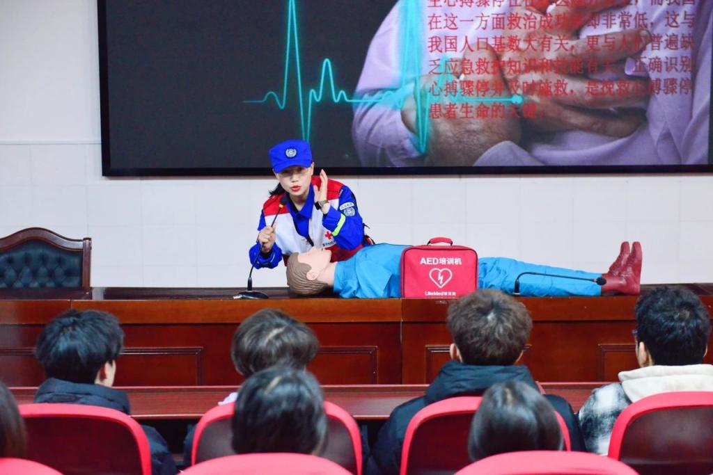 本次宣讲采用“理论讲授+实操训练”方式,吴老师为同学们详细讲解急救措施,利用人体模型进行现场实操演示心肺复苏、AED(自动体外除颤器)使用等技能操作,同学们满怀热忱,认真聆听,与老师积极互动。在老师耐心讲解技术要领后,同学们纷纷参与到实操练习中,他们将带着这份技能,在有需要的时刻挺身而出,及时为他人提供帮助。